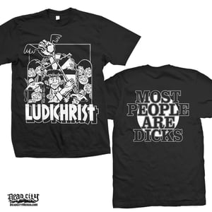 LUDICHRIST "Most People Are Dicks" design T-Shirt.