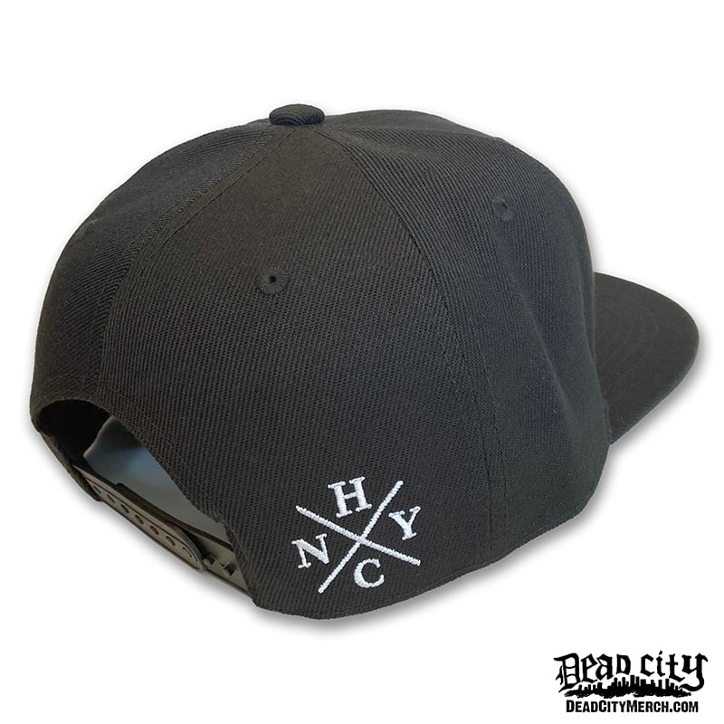 Black Cap with Embroidery featuring the MURPHY'S LAW logo and Arf Dog on the front, and the NYHC Logo on the back.